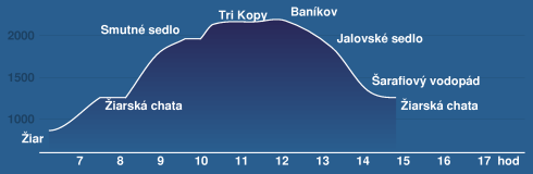 po zelené Jalovské sedlo (1858m) - Šarafiový vodopád (1350m) - Žiarská