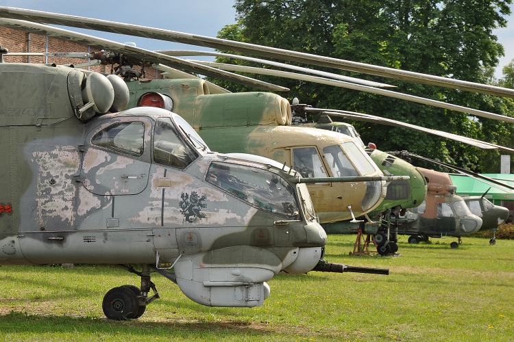 Line of helicopters (Mi-24 and Mi-8 in the front)