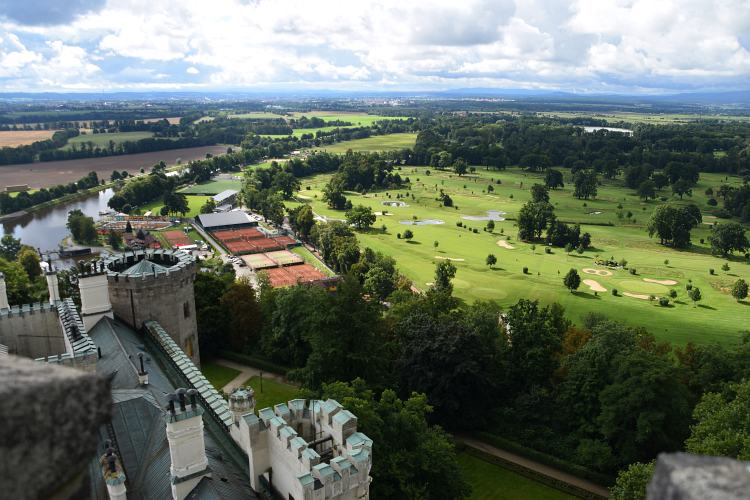 Výhled z nejvyšší věže zámku Hluboká