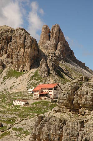 Rifugio Locatelli alle Tre Cime, v pozadí Toblinger